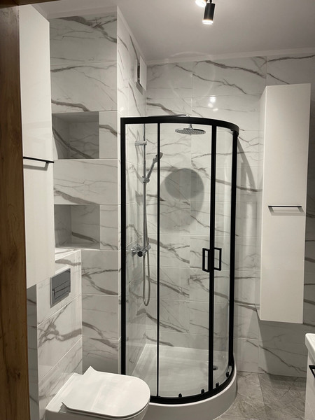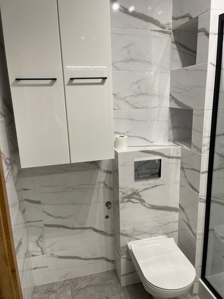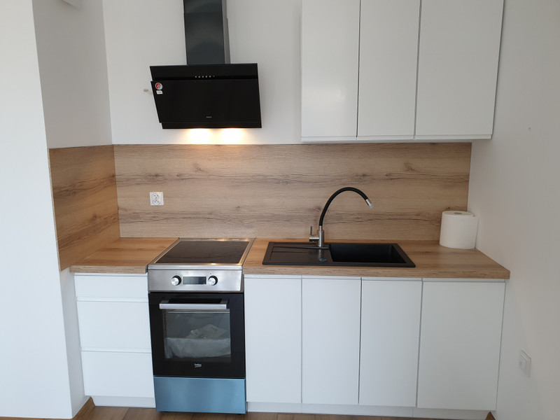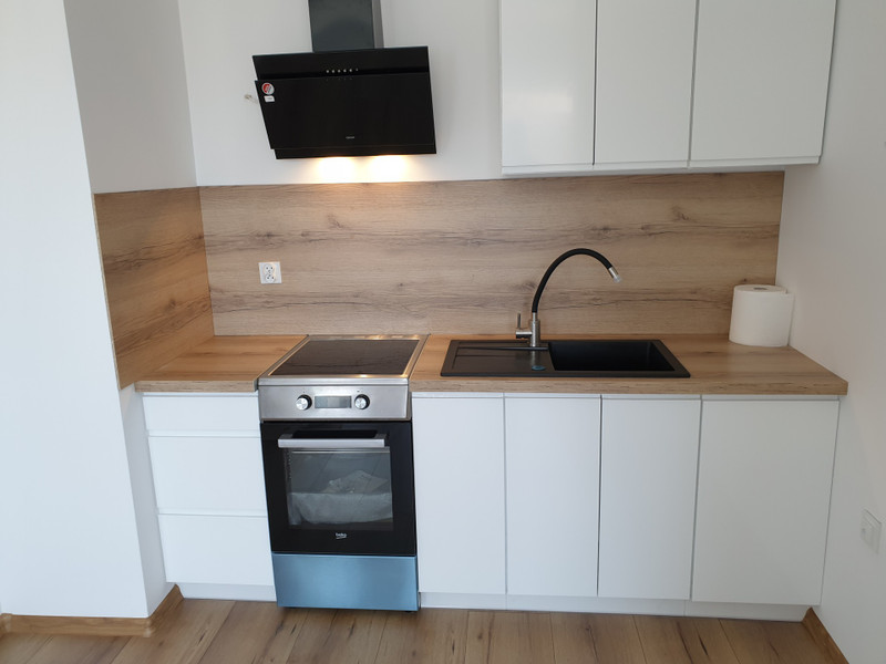 Zabudowa w Kuchni z kuchenką wolnostojącą indukcyjną (z piekarnikiem elektrycznym), okapem. Na podłodze wysokiej klasy panele odporne na ścieranie (V klasa). W łazience pralka.