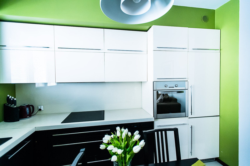 • Salon, z aneksem kuchennym wyposażonym w niezbędne urządzenia (lodówka, piekarnik, płyta indukcyjna, zmywarka)