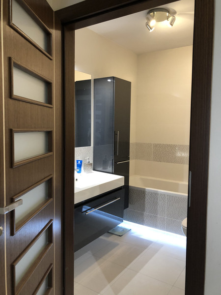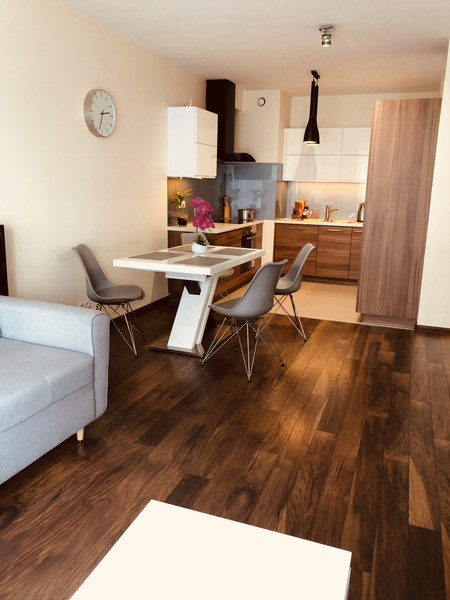 Apartament wykończony jest w wysokim standardzie, wyposażony w sprzęt AGD,w tym ekspres do kawy DeLonghi.