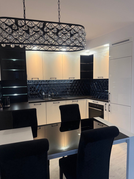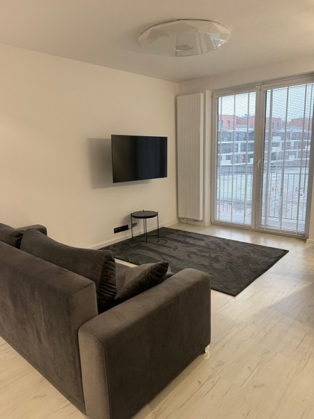 For rent, a very atmospheric 60-square-meter apartment located on the second floor of a building at 66 Ceglana Street, with windows facing the recreational area and a pond. The apartment consists of an entrance hall, a spacious living room with a kitchenette, two bedrooms, and a large bathroom/bathing area. The entrance hall features a large wardrobe with a seat and mirror. The main bedroom has a large bed with storage and a large built-in wardrobe. The smaller bedroom, which can be converted into a study or any other configuration, has a built-in wardrobe. The living area includes a built-in kitchenette with modern appliances, a table with four chairs, a sofa, and a TV. The living room opens onto a large 5.5-square-meter balcony. A large bathroom with a shower, a seating area, a washer/dryer, and underfloor heating. The apartment is air-conditioned and has wooden blinds in every window. Kościuszki Park and Muchowiec Park are nearby. This is an ideal place for those who value comfort and a great location – close to the city center. Fees: Rent PLN 3,300 (parking space included) + administrative fee approx. PLN 900 (with advance payment for hot and cold water) + electricity according to consumption