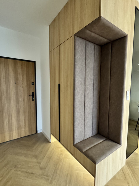 Zabudowa stolarska wysokiej klasy na wymiar w kuchni, sypialni, łazience i holu.