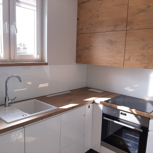 samodzielnej kuchni z oknem w pełni wyposażonej tj.: meble w zabudowie wraz z sprzętem AGD – (zmywarka, piekarnik, lodówka, płyta indukcyjna )