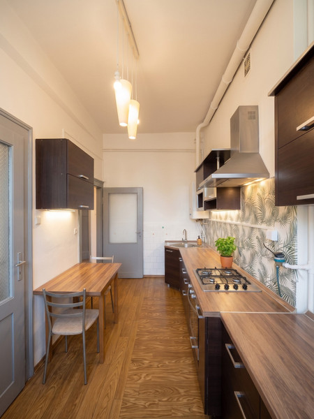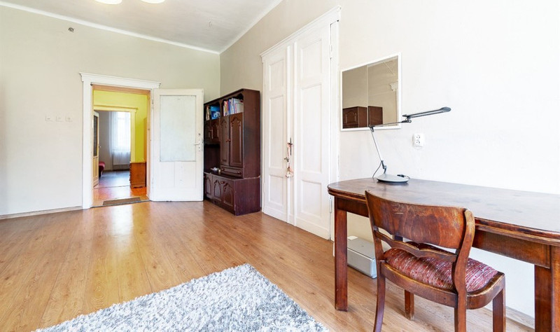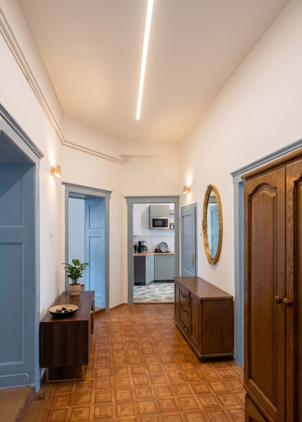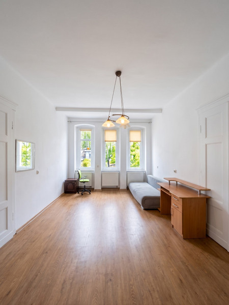 Najsilniejszym punktem mieszkania są duże, jasne pokoje dzienne (4 pokoje po 15-25 m2 każdy) oraz lokalizacja w ścisłym centrum miasta.