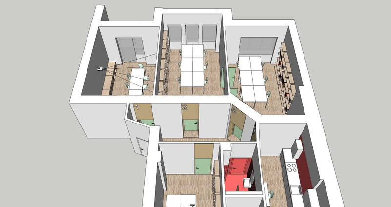Wynajmę duże (122 m2 brutto), przestronne mieszkanie w przystępnej cenie. Idealnie nadaje się do zamieszkania przez dużą rodzinę lub kilkuosobową grupę znajomych, studentów z których każdy może dysponować własnym nieprzechodnim pokojem (pokoje zamykane na klucz) lub jako lokal biurowy.