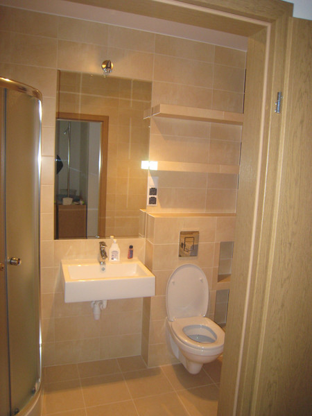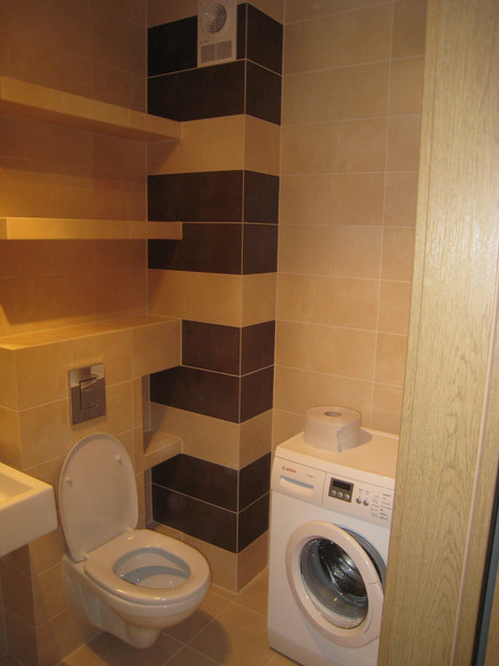 Łazienka: kabina prysznicowa, WC, umywalka, pralka.