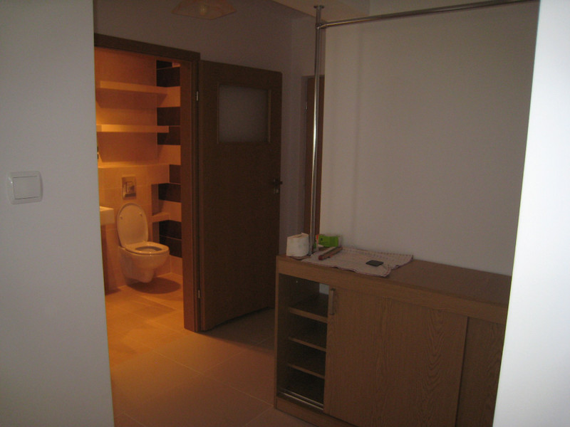 Przedpokój: wieszak, szafa na obuwie.