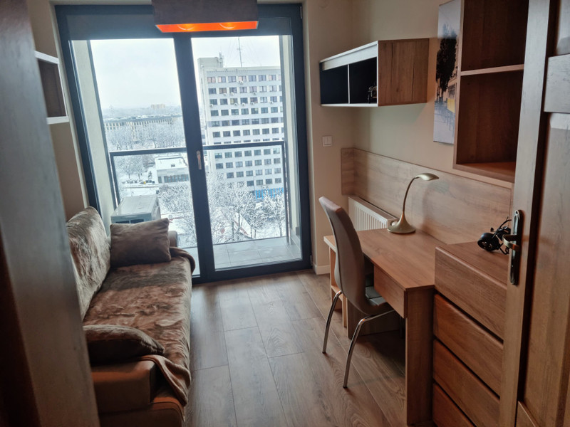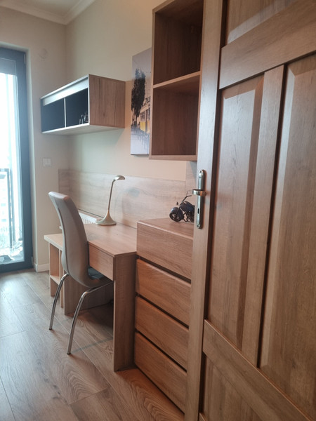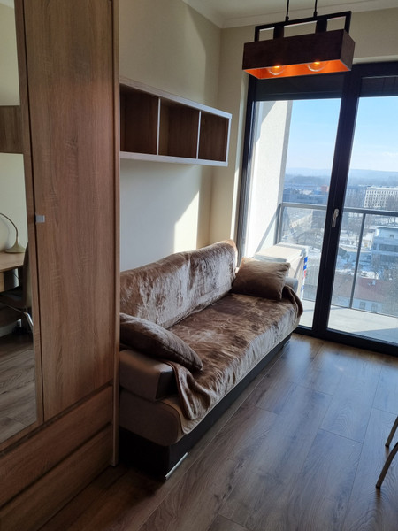 Nieużywane mieszkanie 2 pokoje 49 m, z dużą bardzo jasną kuchnią, Klimatyzacją w każdym pokoju i kuchni, z balkonem - z roletą elektryczną, z wejściem z pokoju i z 2gim, z kuchni. Wyposażone w markowe sprzęty AGD (płyta, piekarnik, mikrofala, lodówka z zamrażalnikiem, wyciąg. TV), podłoga z płytek. Łazienka prysznic, wc, bidet, ręcznikowiec, pralka, szafka -podłoga z płytek. 2 pokoje (sypialnia z łóżkiem na 2 osoby i do pracy), w obu pokojach szafy, biurka, szafki z półkami, podłoga z paneli. W budynku 2 nowoczesne windy. Pełne wyposażenie do zamieszkania. Internet do wykupienia danej opcji, u odm., we własnym zakresie. Okna na południe i zachód. Na parterze sklepy, gabinety medyczne, kawiarnia, winiarnia i piekarnia. Obok Lidl. Tuż przy, przystanek MPK tramwajowy i autobusowy (Rynek Gł 10 min, Dworzec PKP i PKS, Uniw. Ekon. 5 min a Pl. Centralny NH 15 min., AWF i Politechnika 5 min) Jest możliwość wynajęcia miejsca postojowego w podziemiu za dod. opłatą 300 zł. Opłaty administracyjne 800 zł (wyrównanie raz na 0,5 roku) + zużycie elektryczne, w/g pomiaru licznika. Zaliczka miesięczna prąd 200 zł. Kaucja 6 tys. Umowa najmu notarialna.