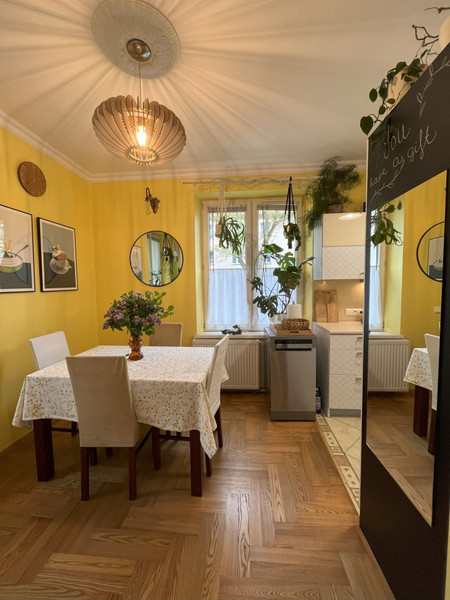I am pleased to offer a unique apartment for rent on an elevated ground floor in a green area of Kraków. A place full of plants, with a garden view and access to a shared garden.