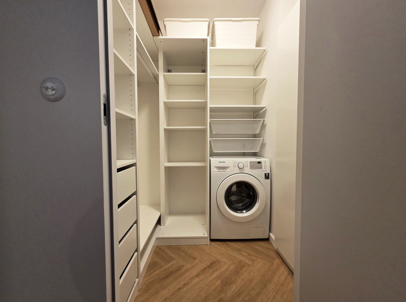 • oddzielna garderoba z pralką, zapewniająca komfort i dodatkową przestrzeń do przechowywania