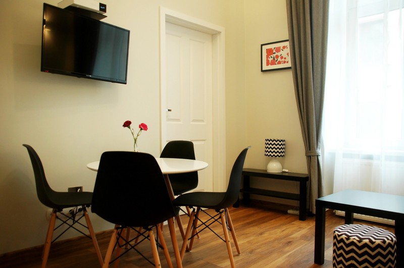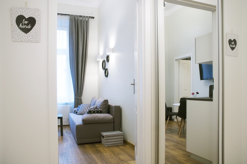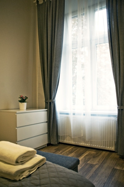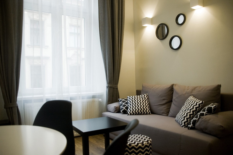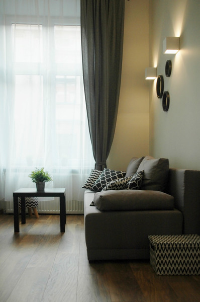 Mieszkanie dwupokojowe o powierzchni 30m2, położone jest w samym centrum Starego Miasta przy ul. Kochanowskiego 1. Graniczy bezpośrednio z parkiem Szymborskiej (widać park z okna). Zlokalizowane jest na pierwszym piętrze kamienicy. Wykończone i umeblowane składa się pokoju z aneksem kuchennym, sypialni, łazienki oraz przedpokoju.