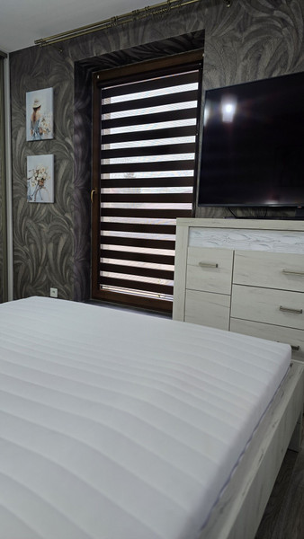 W każdym pomieszczeniu zamontowane lampy, karnisze, w oknach rolety "dzień-noc"