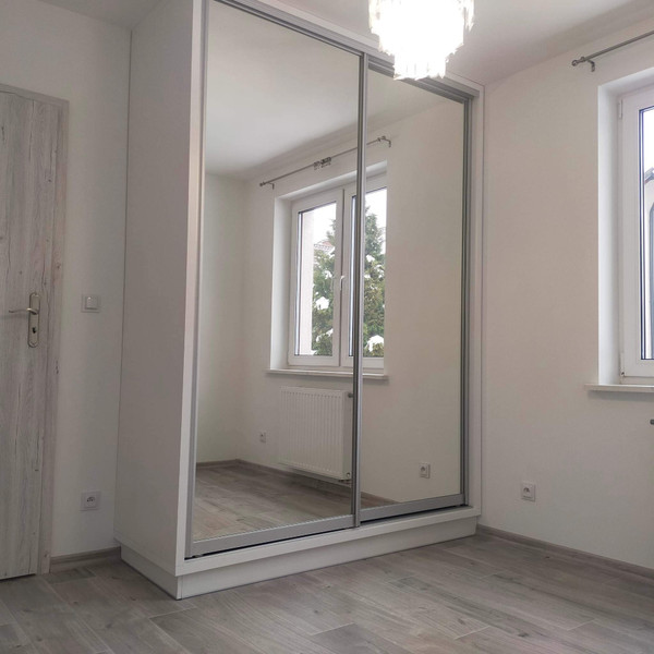 jednej z sypialni znajduje się pojemna przesuwna szafa z lustrami.