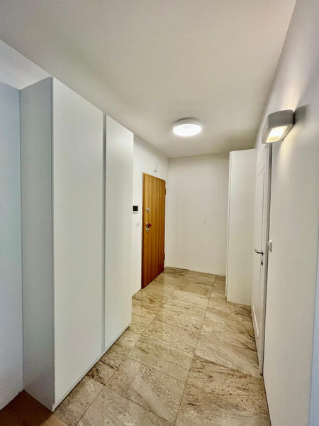 • W korytarzu dwie szafy: jedna techniczna z miejscem na odkurzacz i środki czystości, druga zaś przeznaczona na podręczną odzież i buty.