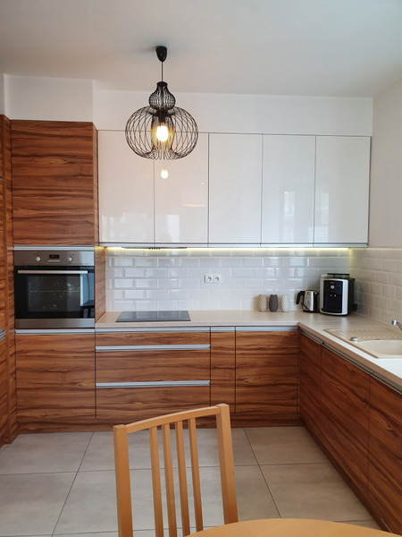 - w pełni wyposażonej w AGD kuchni: lodówka, piekarnik, płyta indukcyjna, zmywarka.