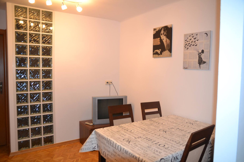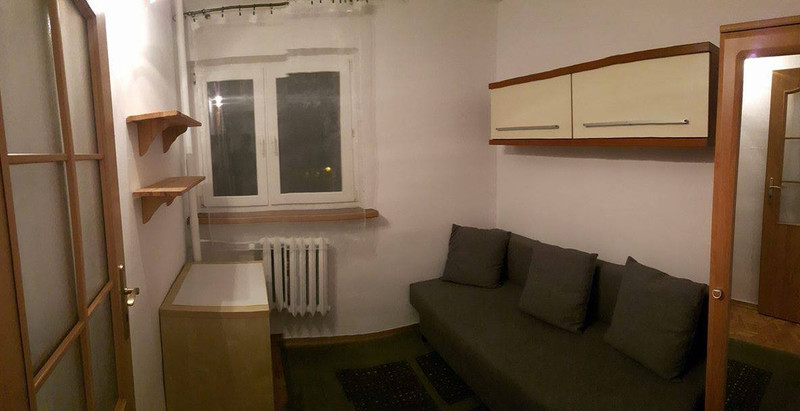 Składa się z trzech oddzielnych pokojów (dwa pokoje po niecałe 9m2, jeden mały niecałe 6m2), wspólnej przestrzeni z kanapą i telewizorem, kuchni, przedpokoju i łazienki.