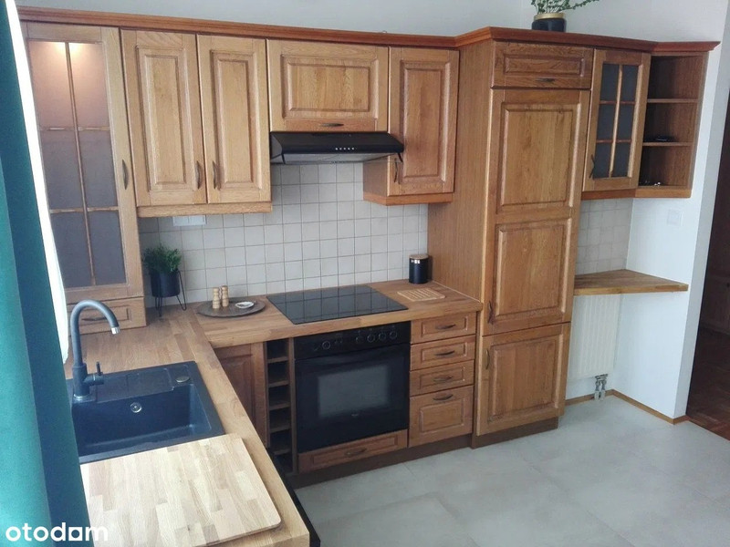Fronty mebli w kuchni z litego dębu, blat dębowy, stół dębowy, nowe krzesła itd.