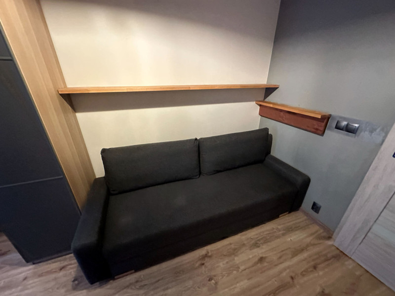 Sypialnia stanowi oddzielne, zamykane pomieszczenie. Znajduje się w niej wygodne łóżko, szafy do przechowywania.