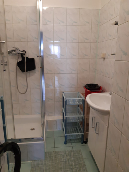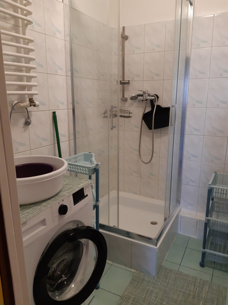 Łazienka i WC są oddzielne w glazurze i terakocie. W łazience jest prysznic oraz pralka.