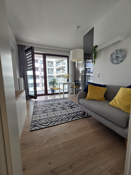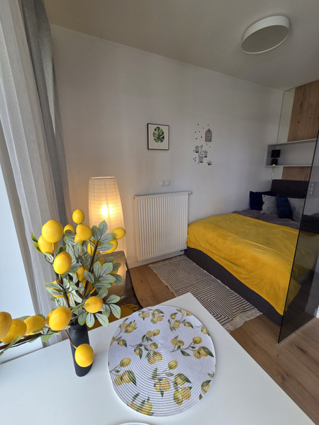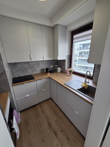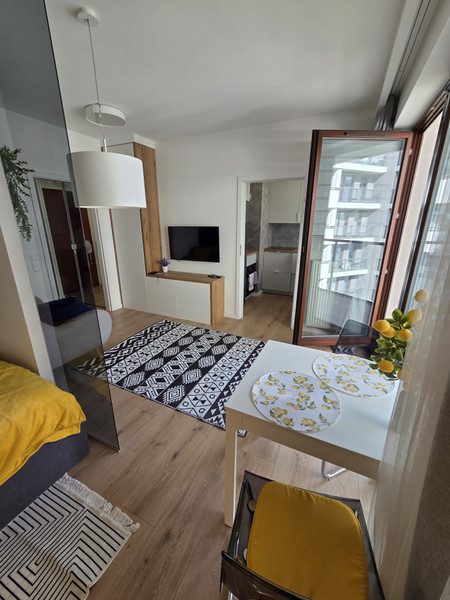 Mieszkanie znajduje się na 6-ym piętrze z windą i wysokim standardem wykończenia – wydzielona część sypialna, mała, ale oddzielna, w pełni wyposażona kuchnia (lodówka, płyta indukcyjna, piekarnik).
