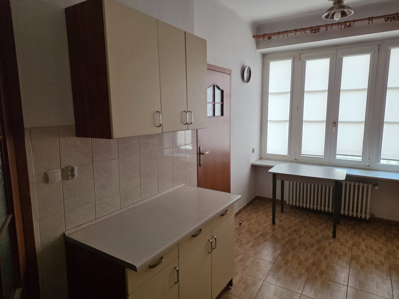 Na wyposażeniu zabudowa kuchenna (szafki kuchenne w pełni nadające się do użytku, nowy zlew z nową baterią), kuchenka gazowa, mała pralka i mała lodówka.