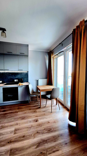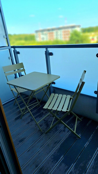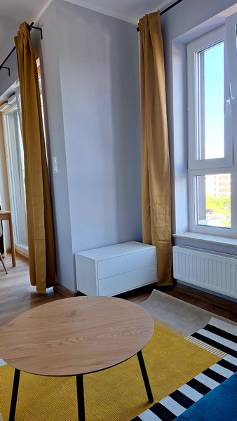 Lokal znajduje się na 4 (ostatnim) piętrze, nikt nie będzie wam tupał w sufit, jest na to 4 piętro oczywiście winda. Mieszkanie sprawia większą przestrzeń niż 26m² dlatego spokojnie mogą tam zamieszkać 2 osoby. Mieszkanie ma loggię 2,5m² z stolikiem kawowym i krzesłami, wyjście na loggie przez duże przeszklone drzwi które powiększają i otwierają przestrzeń.