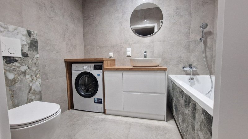 Mieszkanie jest w pełni umeblowane i wyposażone w zmywarkę, lodówkę, pralkę, piekarnik, płytę indukcyjną.