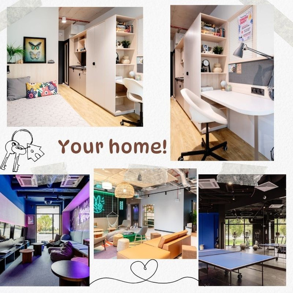 You can enjoy an elegant lobby, a TV lounge, a work & chill area, a study zone, an additional shared kitchen for communal cooking, and a modern gym.