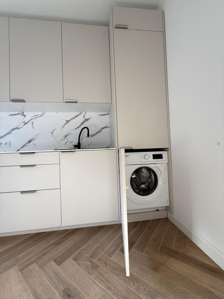 • Pełne wyposażenie: Kuchnia w zabudowie posiada kompletny sprzęt AGD (zmywarka, pralka, piekarnik, płyta indukcyjna, lodówka). W salonie relaks zapewni elegancki, skórzany narożnik.