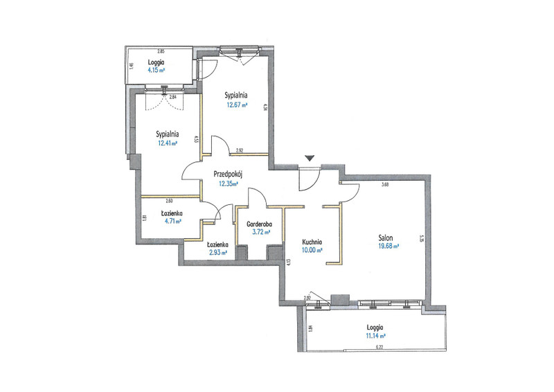 Mieszkanie o powierzchni 78,5 m2, składa się z: