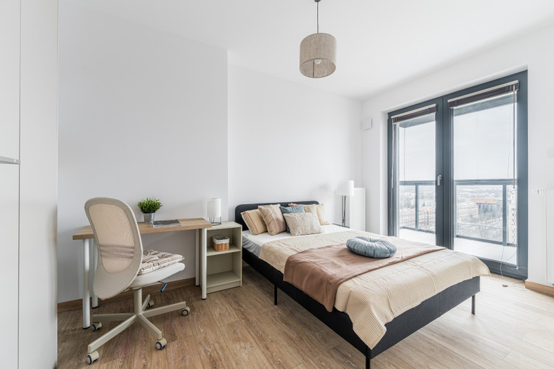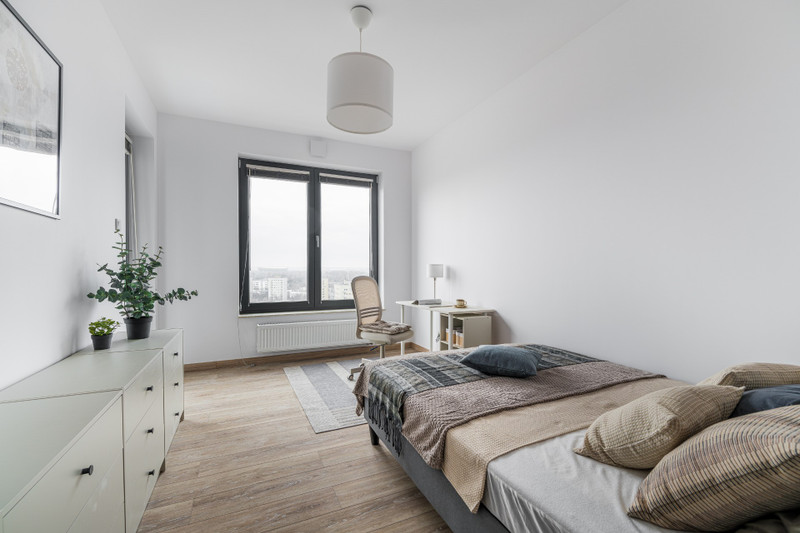 • Prywatność i cisza: 13. piętro, dwa duże zabudowane balkony (brak hałasu z ulicy), drzwi wewnętrzne o podwyższonej izolacji akustycznej, zapewniają idealne warunki do pracy oraz wypoczynku