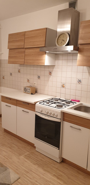 Wyposażone jest w dwie rozkladane kanapy, fotel, pralkę, a w kuchni w szafki i sprzęt AGD: lodówkę, płytę gazową, piekarnik oraz okap kuchenny.