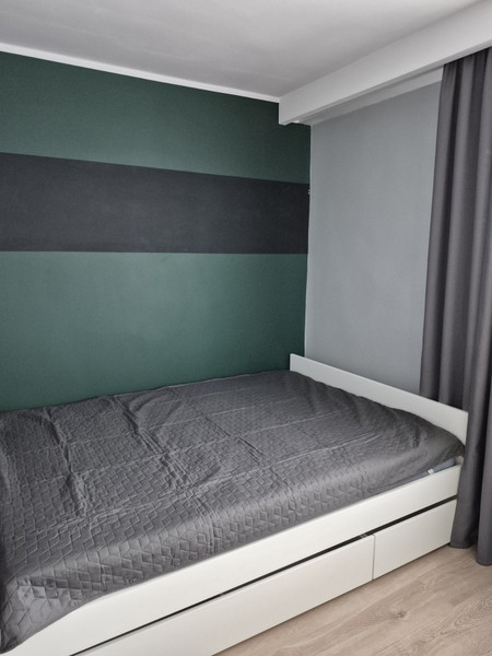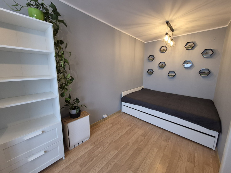 3. Pokój nr 3 (z łóżkiem i szafą): Łóżko z szufladami do przechowywania oraz bardzo pojemną szafę wnękową z lustrami, która optycznie powiększa przestrzeń.