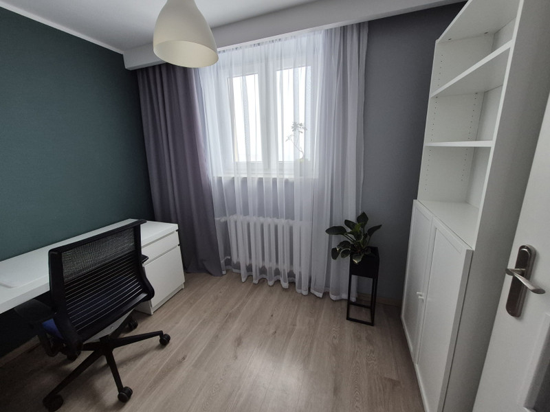 2. Pokój nr 2 (z biurkiem): Idealny do nauki lub pracy zdalnej. Posiada duże biurko z fotelem obrotowym.