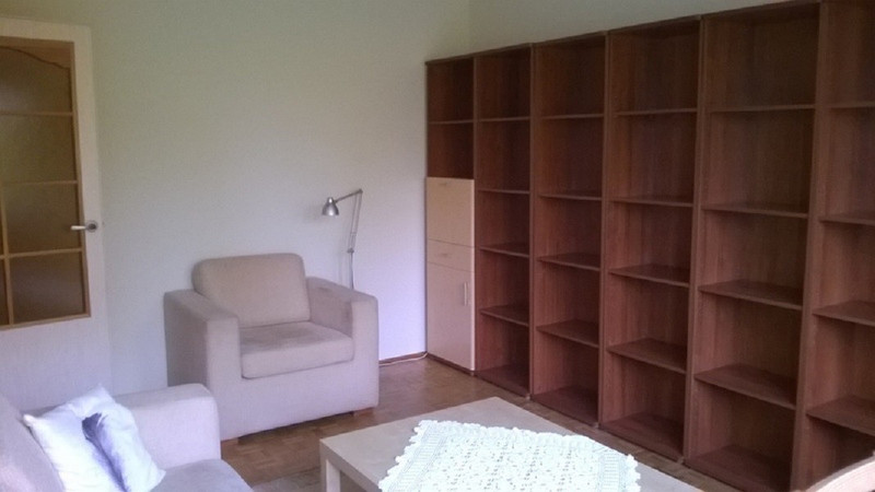 Mieszkanie umeblowane, m.in. rozkładana sofa 2-osobowa, łóżko 140x200, dwie szafy (4- i 2-drzwiowa), fotel, regały (w tym regały z zamykanymi szafkami), ława, biurko.
