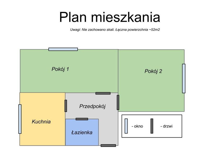 Do wynajęcia bezpośrednio od właściciela jasne, wygodne mieszkanie o pow. 52 m2, położone na parterze.