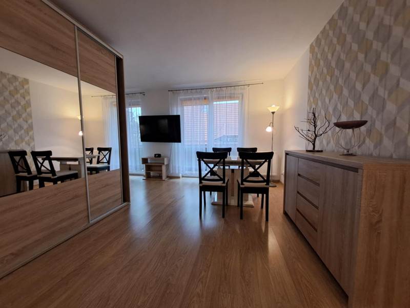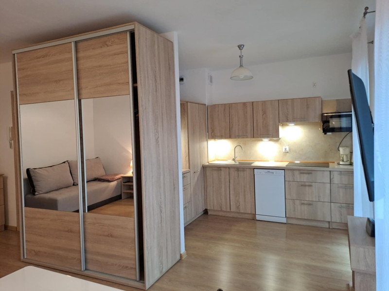 Nowoczesna kawalerka w stanie idealnym, w pełni umeblowana i wyposażona, gotowa do zamieszkania od zaraz! Przestronny aneks kuchenny został wyposażony w nowoczesną płytę indukcyjną, lodówkę, zmywarkę oraz meble na wymiar, co gwarantuje komfort i funkcjonalność. W głównym pokoju znajduje się duża szafa, wygodna sofa rozkładana, pojemna komoda oraz stół z krzesłami, duży telewizor tworząc przytulną przestrzeń do wypoczynku i codziennych aktywności. Łazienka wyposażona jest w kabinę prysznicową oraz pralkę, co zapewnia pełen komfort użytkowania. Dodatkowym atutem jest przestronny słoneczny balkon idealny na poranną kawę lub wieczorny relaks.