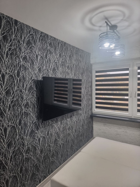 W każdym pomieszczeniu zamontowane lampy, w oknach rolety ("dzień-noc")