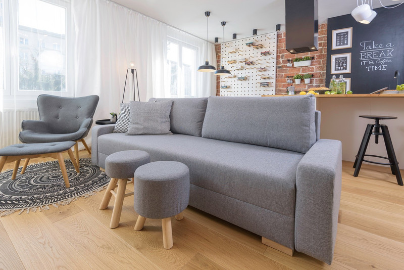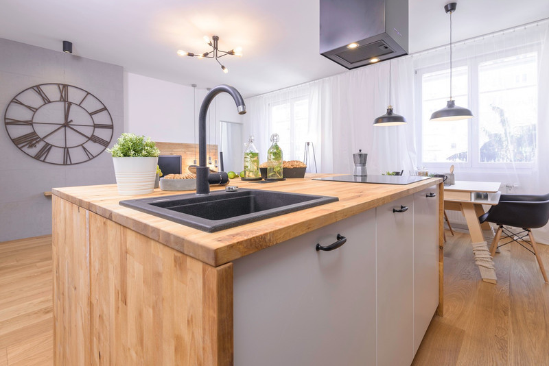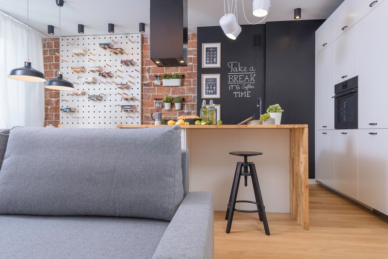 Funkcjonalne 2 pokoje z modernistyczną wyspą kuchenną.
