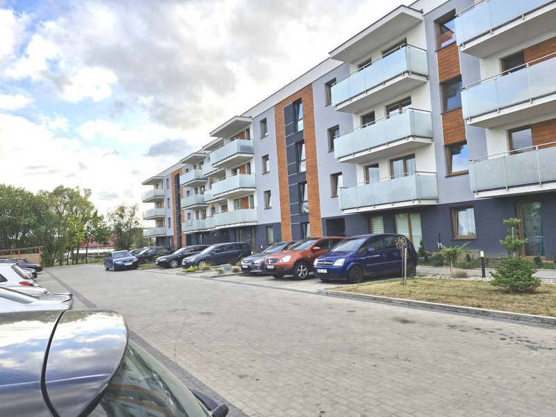 Pod blokiem znajduje się bezpłatny parking, na którym mieszkańcy mogą parkować samochody.