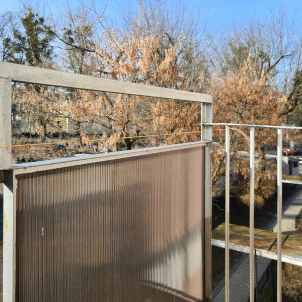 Zlokalizowane w czterokondygnacyjnym bloku modernistycznym, projektu Jacka Nowickiego z końca lat 60-tych. Na drugim piętrze, bez windy. Usytuowanie północ - południe. Z jednej strony okna wychodzą na park, z drugiej na zielone patio między niskimi blokami. Niedaleko park liniowy wzdłuż ulicy Krasińskiego. Parking niestrzeżony na ulicy.