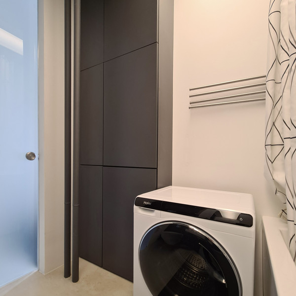 W łazience wanna 180cm, z możliwością skorzystania z prysznica, nowa pralka i brudnik. Sporo półek na kosmetyki oraz środki czystości.