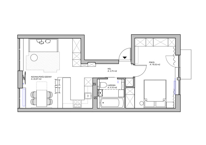 Mieszkanie urządzone maksymalnie ergonomicznie, w pełni umeblowane, w wysokim standardzie. 4 duze szafy, jedna na ubrania wierzchnie.