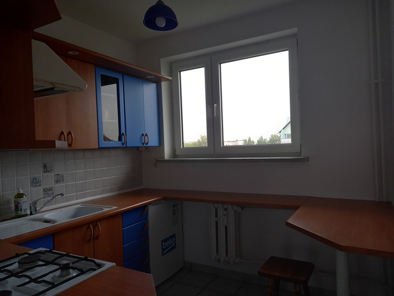 Mieszkanie usytuowane jest na trzecim piętrze w czteropiętrowym budynku bez windy. Składa się z dwóch pokoi, przedpokoju, łazienki z WC, oddzielnej kuchni i balkonu. Lokal jest dwustronny. Mieszkanie umeblowane, z dużą szafą w mniejszym pokoju i komodą w przedpokoju.