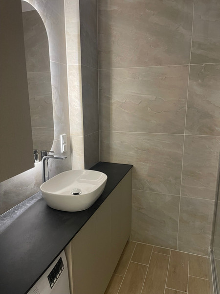 Mieszkanie całkowicie umeblowane, wyposażone w nowy sprzęt AGD: lodówkę, zmywarkę, płytę indukcyjną, pralkę, piekarnik i telewizor.