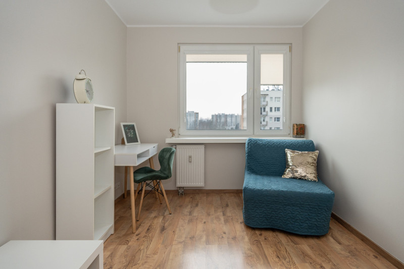 Mieszkanie jest umeblowane, posiada trzy duże i przestronne szafy. Wszystkie pokoje słoneczne, dobrze doświetlone, z zachodnią wystawą okien.