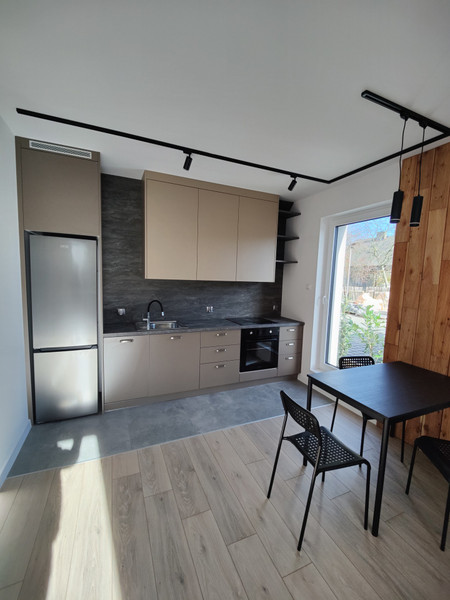 Pełni wyposażona kuchnia nowoczesne meble + sprzęt AGD: lodówka, płyta indukcyjna, piekarnik, zmywarka, okap,