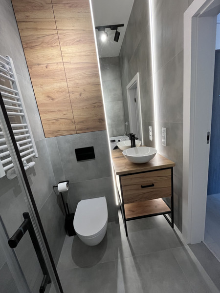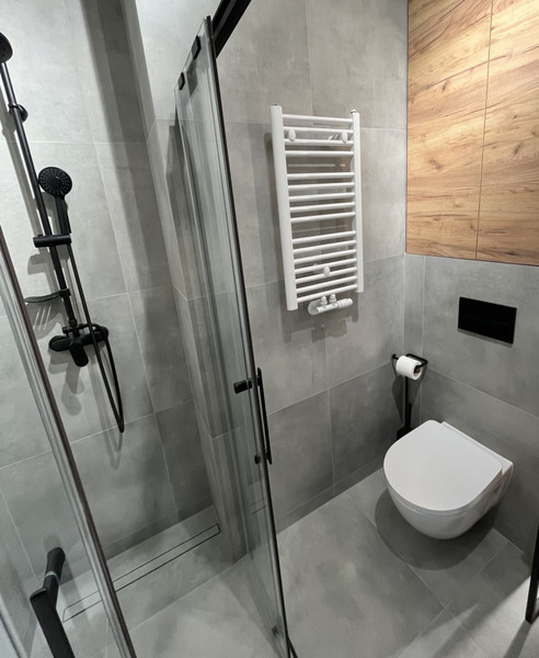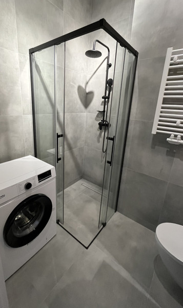 - łazienka z WC o pow. 3,4 m2 z kabiną prysznicową i pralką