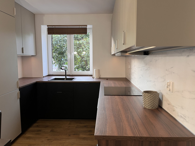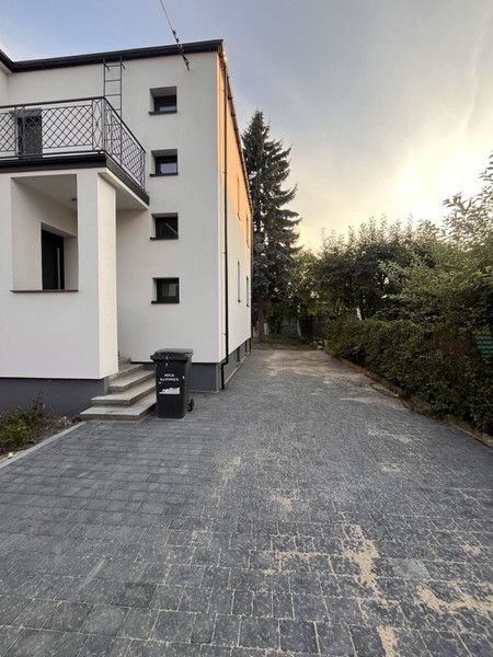 Do wynajęcia mieszkanie w domu wolnostojącym z ogrodem. Brama na pilota. Domofon. Duża, wyremontowana piwnica. W domu znajdują się dwa mieszkania - do wynajęcia jest mieszkanie na parterze. Mieszkania świeżo po remoncie. Mieszkanie ma bardzo duży taras z bezpośrednim wyjściem na ogród. Dwa pokoje - jasne i przestronne. Duża łazienka. Kuchania z pełnym wyposażeniem - zmywarka, piekarnik, pralka, lodówka, zamrażalka, płyta elektryczna. Kuchnia z dużym oknem. Łazienka również z oknem. Okolica cicha i spokojna. Dużo zieleni. 100m do centrum dzielnicy z wszelkimi usługami - szkoła, przedszkole, sklepy, restauracje, poczta, kościół itd. Komunikacja miejska w odległości 100 m.