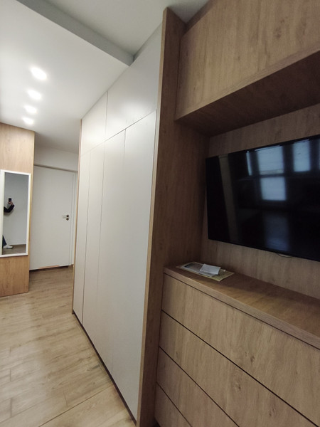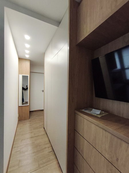 • Przedpokój z pojemnymi szafami na całej scianie (odrzacz, mop)
