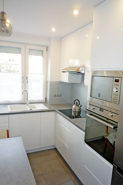 Kuchnia wyposażona w nową zmywarkę płytę indukcyjną piekarnik firmy Indesit oraz Kuchenkę mikrofalową natomiast pochłaniacz powietrza Amica oraz w nową lodówkę i zamrażarkę . Mieszkanie jest w pełni wyposażone w meble w telewizor jak również w pralkę , kanapę i łóżko do dyspozycji pozostają nawet garnki i zastawy.